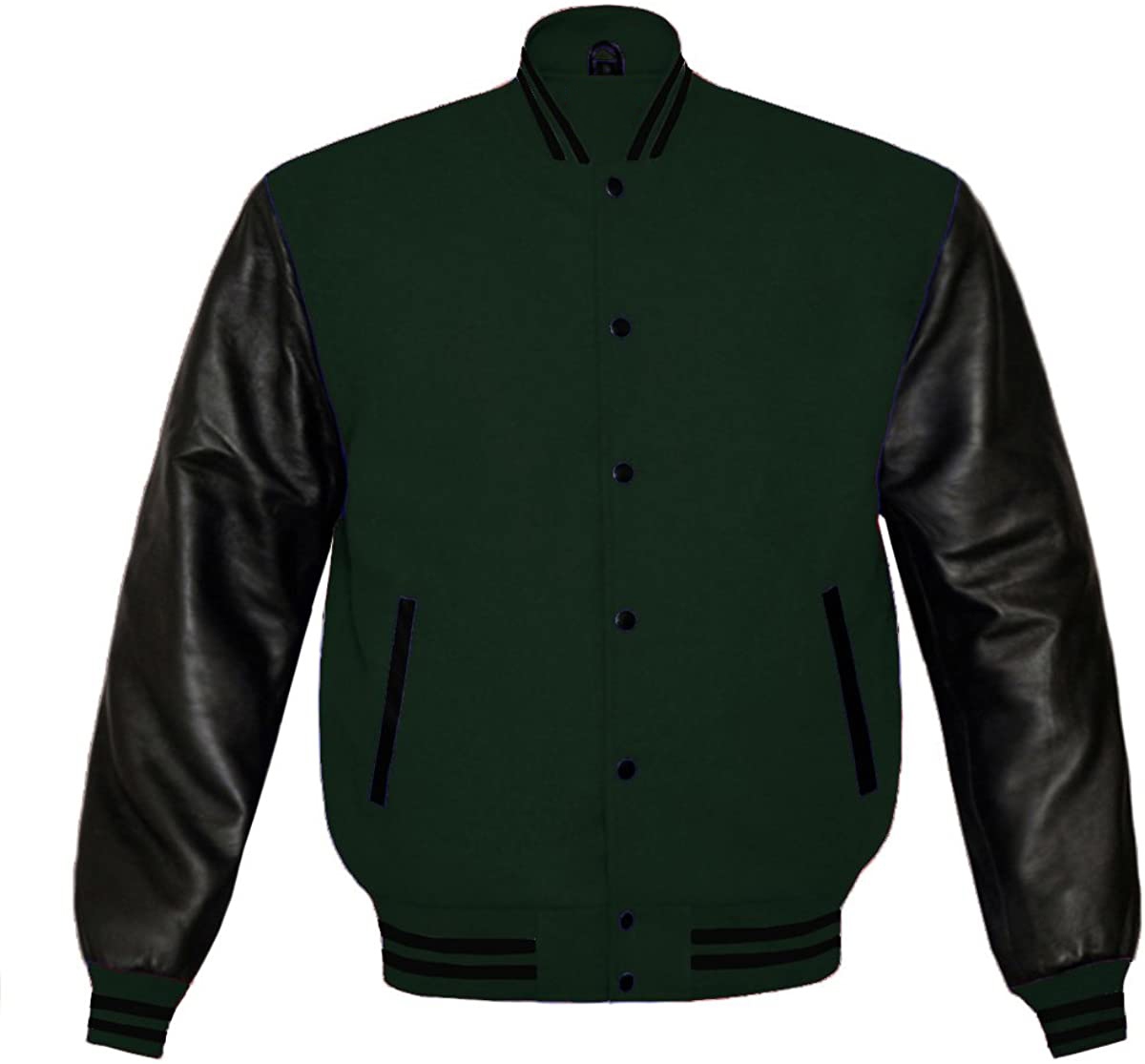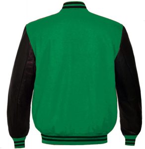 • Jacket Style: Green varsity Jacket With black Sleeves.