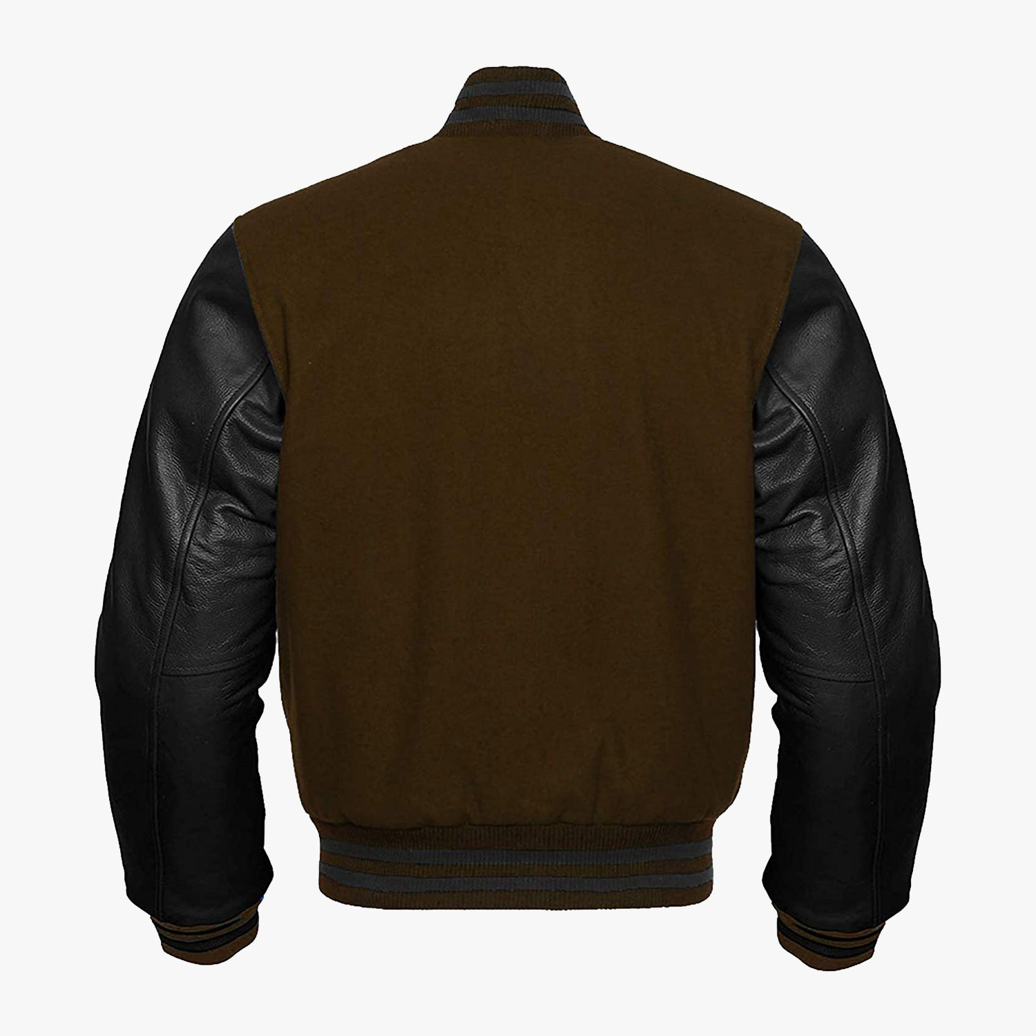 • Jacket Style: Brown varsity Jacket With Black Sleeves.