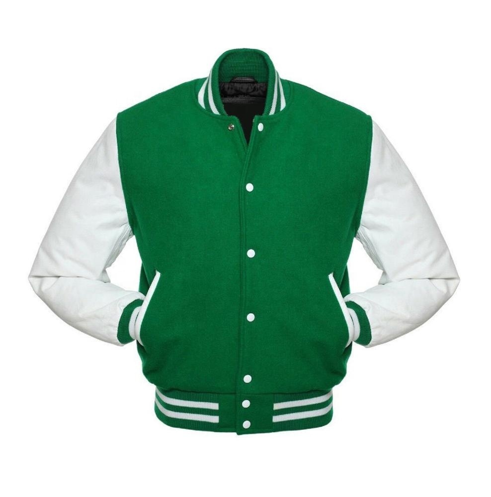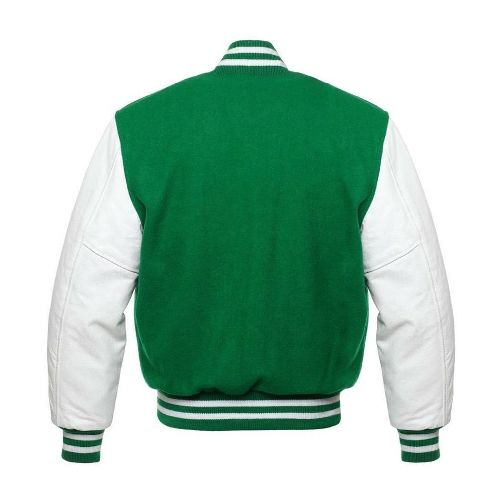 • Jacket Style: Green varsity Jacket With white Sleeves.