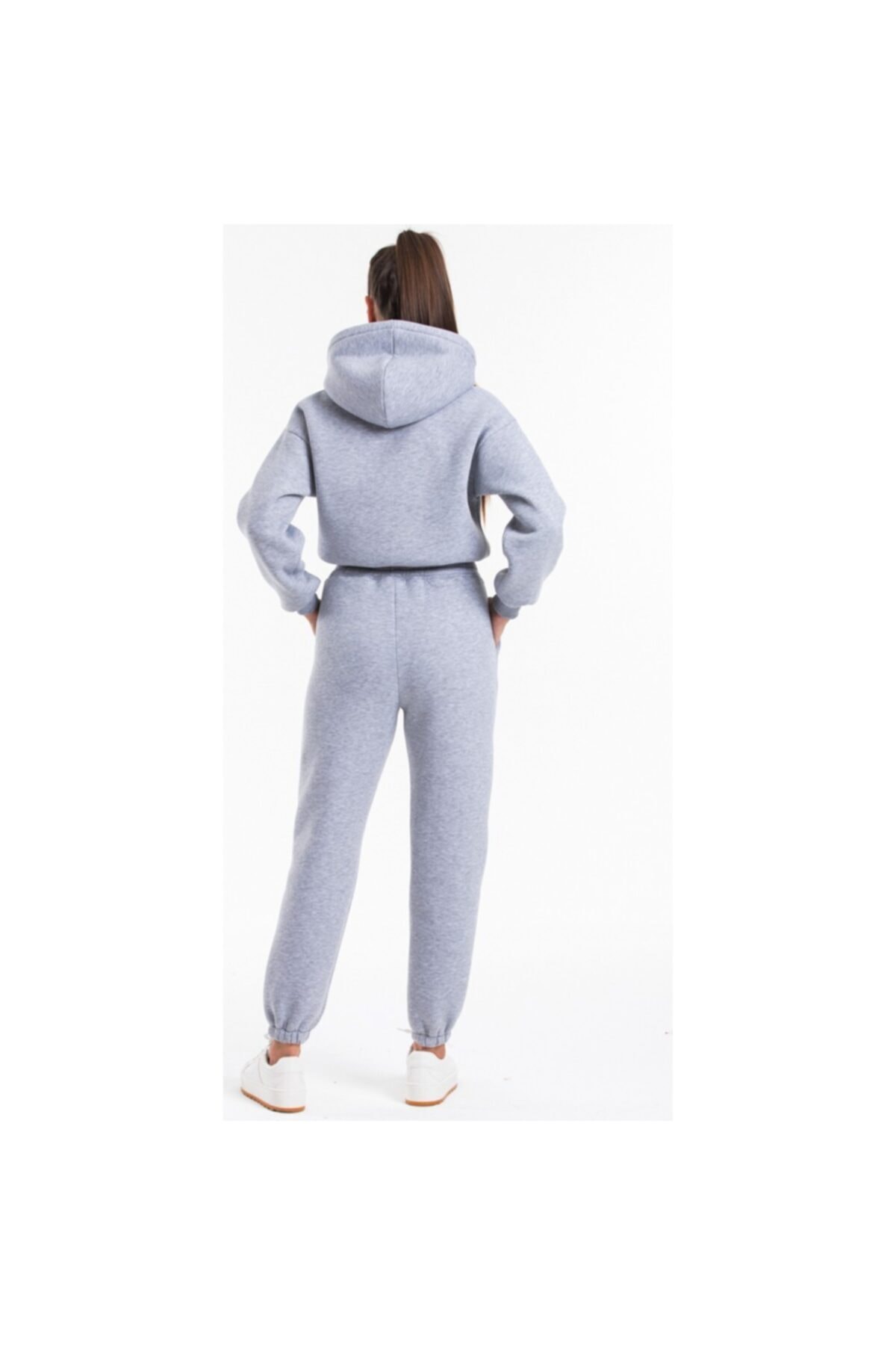 Women Gray Hooded High Waist Fleece Fabric Tracksuit Set
