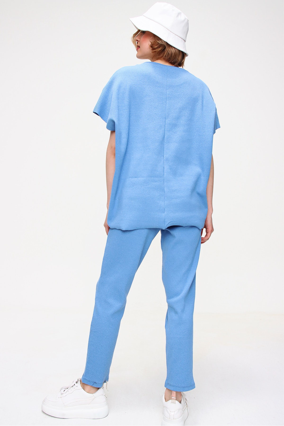 Women’s Blue Crew Neck Ribbed Tracksuit